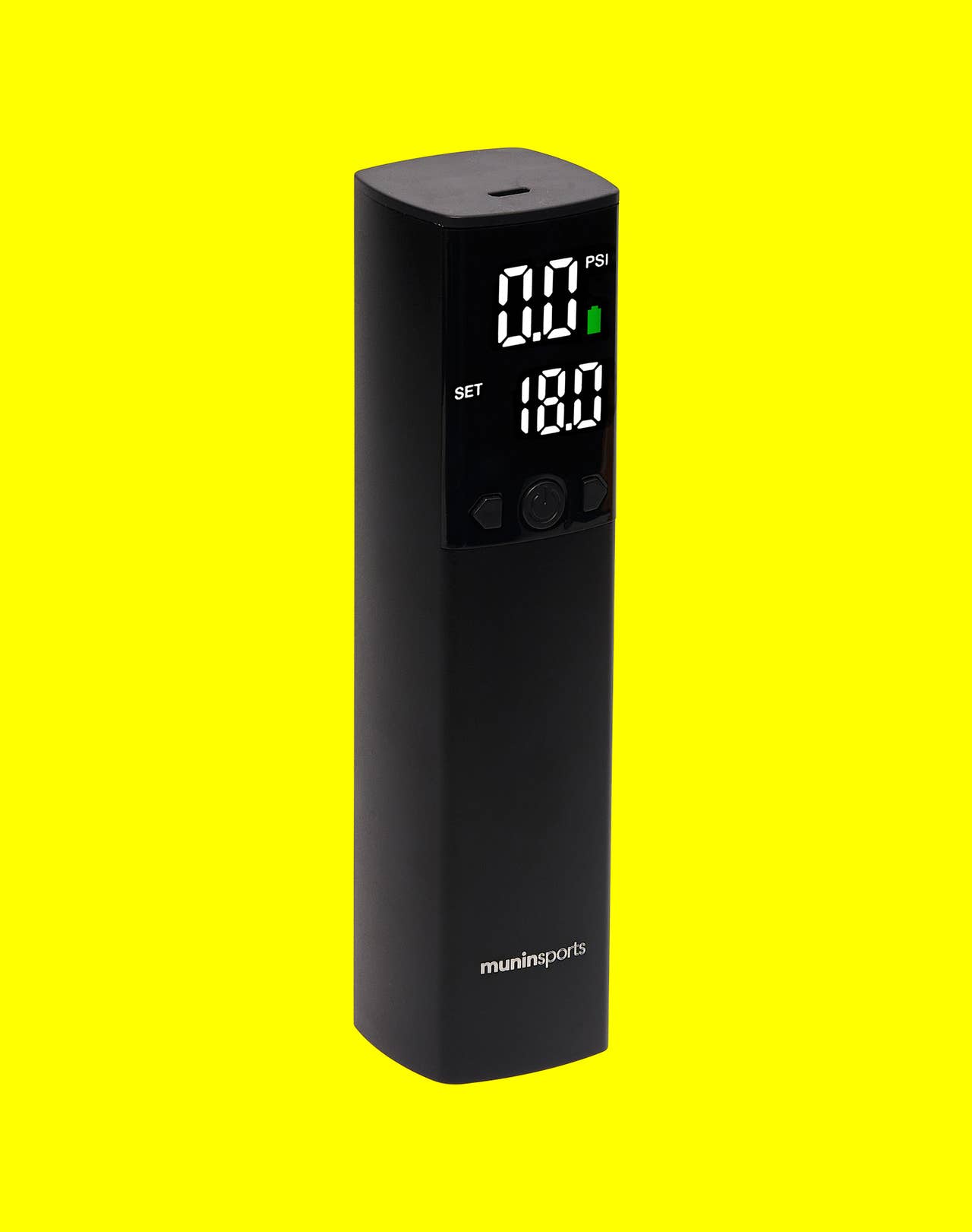 The Munin Sports Smart Ball Pump is a portable, compact, automatic electric pump with intelligent pressure detection and stop function. Just preset the correct ball PSI and start, and it will automatically stop inflating once the preset pressure is reached.
